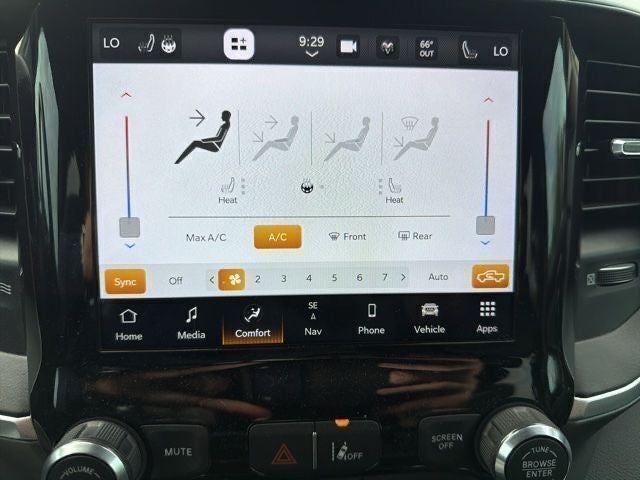 This well-equipped Ram 1500 is packed with features that enhance your driving experience, from the intuitive Uconnect 5 infotainment system with an 8.4-inch touchscreen display to the premium audio system with 9 amplified speakers and a subwoofer. The dual-zone automatic climate control, heated front seats, and heated steering wheel ensure your comfort, while the power-adjustable pedals and driver's seat with lumbar support provide a personalized fit.