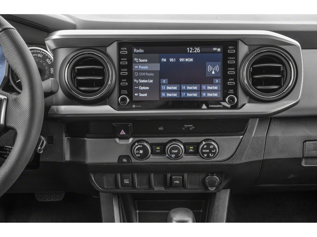 - Radio w/Seek-Scan, Clock, Speed Compensated Volume Control and Steering Wheel Controls