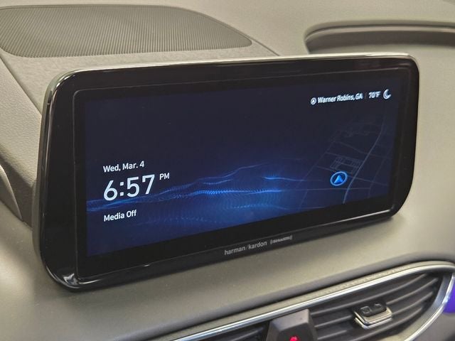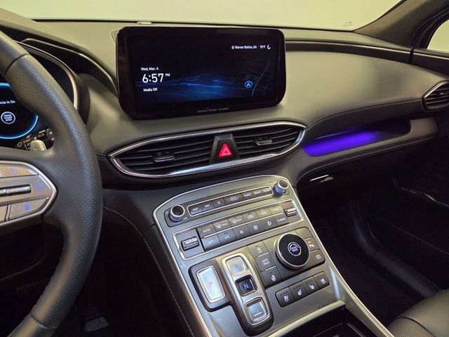 Step inside the Santa Fe Calligraphy and be enveloped in a world of refined luxury. Quilted Premium Nappa Leather Seat Trim, heated and ventilated front seats, and a Leather-wrapped steering wheel create an unparalleled level of comfort and sophistication. The Heads-Up Display and intuitive controls make every journey seamless and enjoyable.